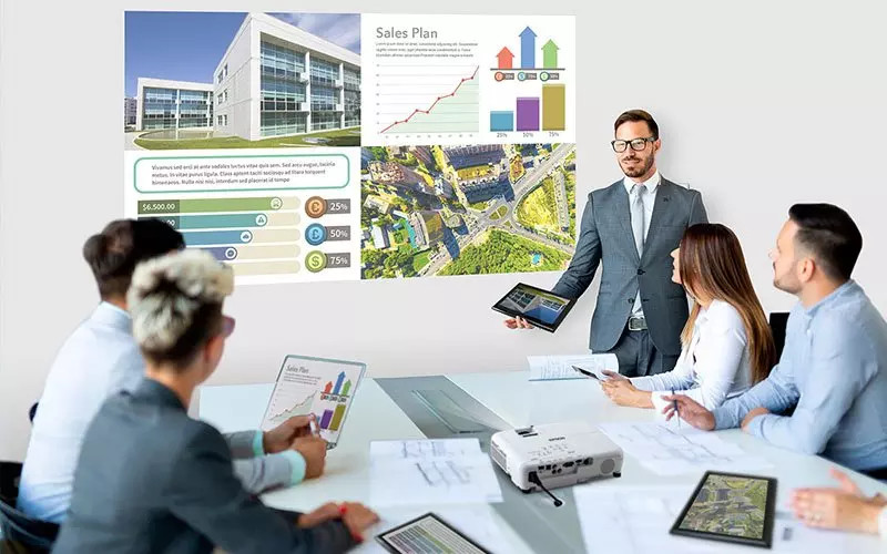 Maximális siker, minimális erőfeszítésselBármilyen szakmai területen, bármely alkalommal van rá szüksége, az EB-FH52 a legjobb vezeték nélküli vetítési megoldás. Tökéletes részletgazdag, tiszta előadások bemutatásához vagy videotartalmak megtekintéséhez, stílusos formavilága pedig a megfelelő benyomást kelti minden munkakörnyezetben. A Full HD felbontású, 4000 lumen fényerejű vetítési teljesítmény verhetetlen sokoldalúságot ígér a tartalmak megjelenítésében. De ez a nagyszerű teljesítmény nem jár együtt semmilyen kompromisszummal a megbízhatóság terén. A megbízható 3LCD technológia minimálisra csökkenti a beavatkozási és karbantartási igényeket – így Ön évekig élvezheti a kiváló minőségű, megszakításmentes megbeszéléseket.