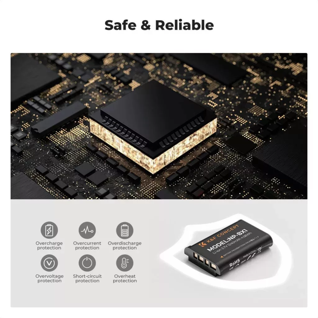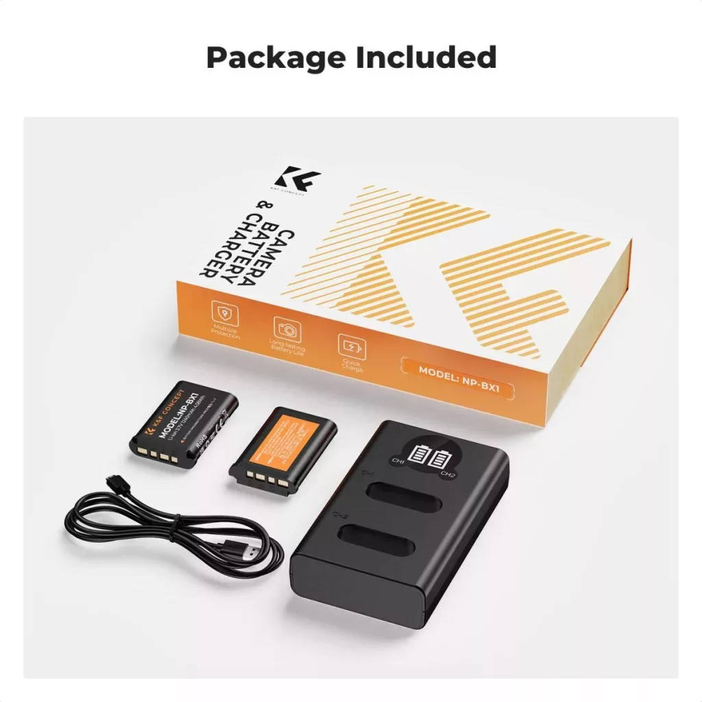 K&F Concept hordozható dupla USB-C akkumulátor NP-BX1 töltő, LCD + 2db NP-BX1 akkumulátor 1240mAh