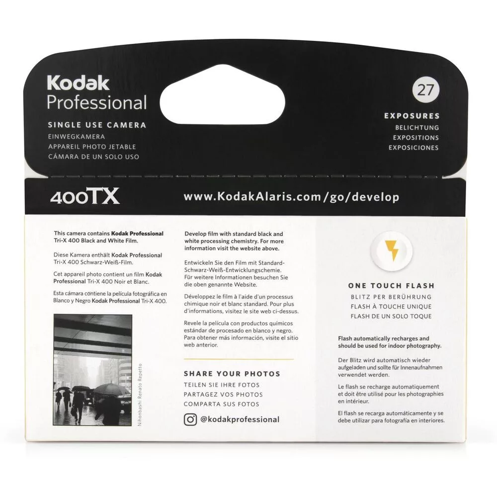 A legendás ISO 400-as Tri-X film jellegzetes szemcsézettségével és mély kontrasztjaival ikonikus képi világot teremt, miközben 27 felvétel áll rendelkezésedre kreativitásod kibontakoztatásához.